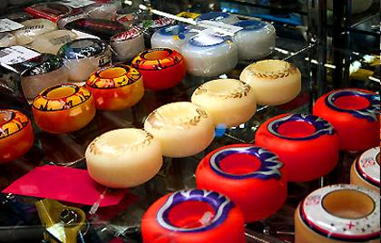 Ratukai būna nuo 49 iki 60 mm skersmens. 60 mm ratukai pritaikyti rampoms, 49 milimetrų pritaikyti važinėti gatvėse. Dažniausiai pasitaiko 53-54 milimetrų ratukai. Su jais patogu važinėti tiek rampose, tiek gatvėse. Tai pat ratukai skirstomi pagal kietumą. Minkšti ratai suteikia privalumų rampose, nes užtikrina stabilumą. Tuo tarpu kieti ratai skirti daugiau važinėti gatvėse, nes nejaučiamas „susmigimo“ pojūtis (pvz. šokant nuo laiptų).